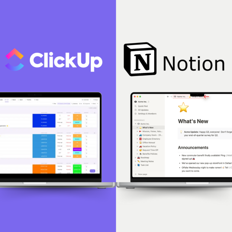 En résumé, ClickUp se présente comme un outil de gestion de projet complet, adapté aux équipes recherchant une solution riche en fonctionnalités et personnalisable, tandis que Notion est idéal pour ceux qui privilégient la simplicité, la clarté et la flexibilité dans la gestion de l’information et la collaboration documentaire.