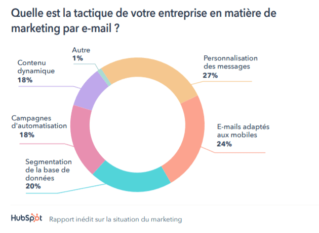 En image, vous trouverez ce que Hubspot révèle sur les tendances marketing 2021 dans son rapport. Effectivement, 77% des entreprises observent plus d’engagements dans les campagnes marketing par e-mail qu’au cours des 12 derniers mois.